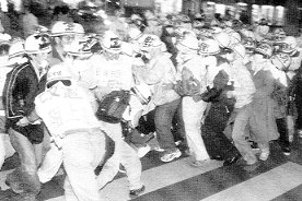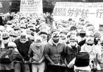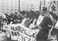 to revision of the Constitution!April 29th: 1000 militant workers and students demonstrated at the centre of Tokyo. - A delegate of the JRCL gave a speech in solidarity. - Win a further advancement of anti-war, anti-Security Treaty struggle! [2] Zengakuren Militant students intervened in a popular televised live debate (from Asahi National Broadcasting) to beat out Constitutional revisionists! - In the beginning, self-styled 'Constitutional defenders' from SDPJ / JCP were miserably cornered by revisionists. - Criticized by militant students, the anti-communist ideologues stood speechless at last. - The irritated moderator incurred a concentrated blame for his helping the revisionists. Anti-nuke civic gathering on 23 Apr: active students imbued the rally with militant confident. 3 SDF minesweepers entered a civilian port in Kanazawa: local students waged a protest (14 Apr). ![]() Okinawa Prefectural Assembly forcibly decided 'to purge anti-war landowners from public services': militant workers and students fought in the forefront of protest (11 Apr.). - Denouncing the official leaders who did nothing to block it. (Photo) [3] Condemn the reactionary sentence to declare 'safety of the operation of the fast breeder reactor Monju! Never allow the government to resume the operation! Series: Expose crimes and internal strife of the police authorities No. 6 Former police bureaucrat Atsuyuki Sassa revealed the dark side of former NPA Chief Osamu Mitsui with the bloody past of his own concealed. - Unrecoverable grudge of Sassa, who was demoted by Mitsui, 'Boss of the security police'. - Sassa himself worked to conceal the historic conspiracy, Kim Dae-Jong Abduction. [3] No to national universities' conversion to independent agencies! Stop revising the Fundamental Law of Education! Join the nationwide united action of Zengakuren on 19 May! Overcome the parliamentarianist distortion by JCP-led student organizations! Build a fighting front to block a reactionary reorganization of education! 1. The Mori administration: rushing towards a neoliberalist 'reform of education'. - A scheme to revise the Fundamental Law of Education under the slogan 'Build a spiritually rich nation'. - Ability-first, statist reorganization of higher education. 2. JCP's crime to play a complementary role for the Mori administration. - Proposals of alternatives within the framework of the government. - 'Better reform of education': fallacious. 3. Smash the neofascist reorganization of education! [4] Aims and meaning of the plan to convert the national universities to independent agencies Introduction of neo-liberalist principle of 'competitiveness' in higher education in the name of 'individualization' 1. Neo-liberalist reorganization of the managerial form of national universities. 2. Reorganization of the system of universities into a 'multi-peaked' hierarchical structure. - Measures for 'deregulation' to enforce 'pro-business' policies. 3. Intensifying 'struggles for existence' among universities. [6] Central May Day Rally of Rengo 'Where's the spring offensive!' Militant workers fought against labour aristocrats' scheme for a moderated May Day. - President Washio's show of a 'confronting' posture against the LDP. - Indignant booting to guests from official oppositions including opposition-turn ultra-nationalist Ozawa. - JRCL propangandized against the Constitutional revision. JCP helps suppression on Prefectural Teachers Unions in Mie: the party shamelessly implies the responsibility for the suicidal case of a school principal to the trade union and the League for Liberation of Burak People. A JCP-led workers group in electric industry: accepting a 'appropriate restructuring'. The first month of the started nursing care insurance system: nursed people bewildered and discredited even to suicide; nursing workers imposed intensified labour, lower wages, and even sacking. [7] Labour aristocrats of metal workers unions advocate for 'smoother shift of labour force'. What is meant by the 'job security' in their 'line of labour movement for 2000'. - Positive cooperation with companies in restructuring. - To drive sacked workers into 'competition' for a job. - A trade union carrying employment exchange services!? The leadership of JCP-led municipal workers unions immersed in campaigns to legislate 'municipal ordinances for residents'. - In Hamamatsu, Kanagawa, and other Prefectures and Municipalities. - A fallacious dream: to regulate state policies by 'ordinances'. - 'Dialogues and cooperation' with conservative voters for election campaign. [8] A consideration on monopoly capitalist limitations in 'safety measures' for nuclear plants - Their 'safety measures' have been focussed on automatization of devises. - 'Scale merits' have been sought by more colossal equipments - Operating workers are just accessories to the 'colossal black box'. - Massive radiation is regularly imposed on maintenance and cleaning workers. How is the radiation to cleaners from subsidiaries covered up? What has caused the increase in radiation to maintenance workers? |