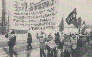 The Mori Administration urged to achieve a 'successful summit'- 'Sweep away the local sentiments against military bases!': Mori's rush to build a new US military heliport in Nago city. - Official leaders have yielded to the 'summit fever' even abandoning their distorted campaign to recall the mayor. Build a fighting front for anti-war, anti-Security Treaty struggle and against neofascist offensive. - Denounce the JCP immersed in self-claiming 'complementary diplomacy'! - Rise in militant fights in spite of coercive repressions! [3] Kaleidoscope 2000 - A record crush in NY blessed Mori's start. - Neo-Darwinist remarks by a Nobel awardee appointed as chief consultant by Obuchi. - The circular constant is ... 'around 3': a fantastic reform in the teaching guidance by the Ministry of Education. - Robot pet fever: their cuteness depends on how much to pay. [4] Middle East 'peace talk' Clinton Administration scheming to rebuild the US-led alliance I. 'Peace Talk' going on thin ice. - Irreconcilable antagonism between Israel and Syria revealed - American imperialism scheming to win over the Syrian administration. II. US-led system of alliance in Middle East turning hollow - Drastic changes in political dynamics in the area. - Surging waves of Islam fundamentalism III Diastrophic turbulence in the Arabic and the Middle world as a whole - Necessity of the bankruptcy of the 'peace talk' - Intensifying struggles over oil resources between the US and China-Russia [6] What are the 'signs of economic recovery'? Increased capital investment with record low unemployment and individual consumption. Oil monopolies in Japan: stampeding into massive restructuring - A drastic realignment into four major groups - Scraping and deserting affiliated oil stations with massive sacking ![]() JRCL propagandized at a Rengo Hokkaido rally (14 March) for the spring offensive. [7] To railway workers! Rise up aiming to overthrow the Mori government rushing to the Constitutional revision! - Rengo leaders led the spring offensive to defeat. Denounce them! - Smash reactionary offensives by the Mori administration! - Smash conspiracies engineered over railway operation! Never allow the rulers to destroy fighting trade unions with the new 'Democratization League' as their tool! Transportation workers to be mobilized for 'rear area supports' in an emergent situation: Fight back against the scheme to build today's version of national mobilization order. - Workers will be forced to transport weapons and ammunition as well as troops. - A national mobilization order is being built for 'an emergent situation in areas surrounding Japan'. - Legislation for emergency is schemed including articles for forced mobilization and requisition. - Denounce Rengo leaders supporting the emergency legislation! [8] History of our revolutionary antiwar struggles No. 28 March-April 1972: indefinite strike by military-base workers union in Okinawa Under the banner: No massive sacking! Antiwar! Remove the military bases! - March 7th: pressing the leadership from below, the trade union went into a 10-day-long strike. - 24-hour picketing at every gate. - On the basis of organized fights from below an indefinite strike was decided. (Continued)