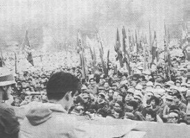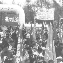 established the new leadershipBreak the crisis of labour movement in Japan! Build workers' struggles from workplaces! - Stormy offensives of neofascist reaction - The Federation's call for a united front to block the Constitutional revision. - Let us strengthen the revolutionary nuclei in the JR labour front! Monopoly capitalists talk about the 'end of the part played by the Federation of Employers' Associations' - Triumphantly saying 'now we have a stable relationship between employees and the employer' 'Jobless workers can return to pastoral lives': a stupid recommendation by the Rengo leadership in the 'measures for job creation' they proposed. [7] Cheaper charges for NTT line connection: a focus of the economic bargaining between the US and Japan - With the G8 Summit ahead - Clinton's demand for an immediate reduction by 41% - NTT's counterproposal of a gradual 22.5% reduction - A rapid change: the monopoly bourgeoisie as a whole moving to change NTT's legal status [8] History of Our Revolutionary Antiwar Struggles No. 30 28 October 1972: The Youth Conference of the Sohyo [General Council of Trade Unions of Japan] against the disposition of SDF troops to returned Okinawa ![]() Tens of thousand young workers and students rallied in to stop the disposition from SDF Kita-Kumamoto base. 1. 'No disposition! Smash the police suppression!' Route 3 was occupied by the mass sit-in - Zengakuren fighters rush into the SDF headquarters - Young workers launch sit-in protests against the police coercions on Zengakuren students. - A massive rally in solidarity with workers in Okinawa 2. Anti-Security waves organized in the labour front in opposition to JSP and JCP 's abandonment of the struggle 3. Showing the organized power of young workers aiming for a leftward turning of labour movement - Militant workers smashed the oppressive opposition by the cadre led by JCP and intra-JSP factions. |