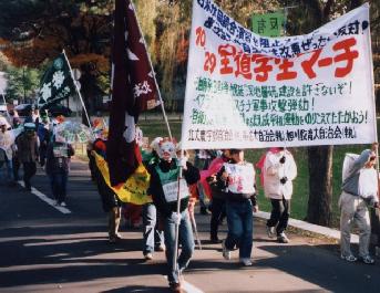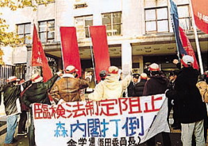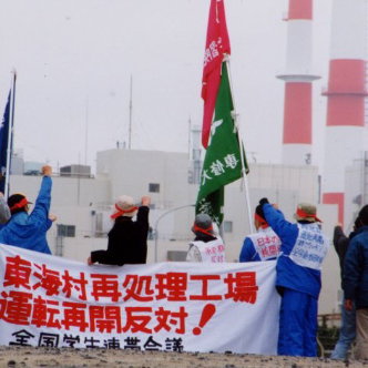 Fight together by denouncing the official JCP / SDPJ leadership abandoning the anti-Security Treaty cause! - The failed 'revolt' by Kato and Yamasaki and waves for another reorganization of the Japanese politics - Divergences over breakthroughs of the political and economic difficulties - Advance "antiwar, anti-neofascist reaction" struggles [2] 20 Nov.: Stop resuming operations of the nuclear fuel reprocessing plant! Militant students demonstrate against the Tokai plant whose facility exploded in 1997 exposing 37 workers to radiation. (Photos below)