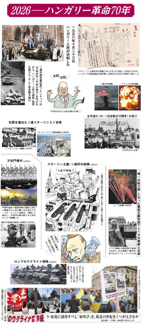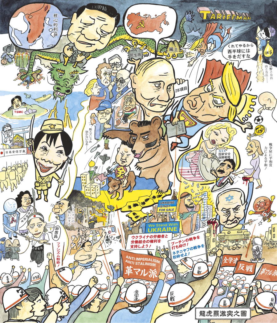 | Overturn the crisis-ridden contemporary world on the eve of a world war! In the 70th anniversary year of the Hungarian Revolution, let us make a breakthrough in the anti-Stalinist movement! ![]() (Workers and students' united action, Oct. 19, Tokyo) I. The crisis of the contemporary world shaken by a new East-West rivalry A. The US and Russia acting in collusion to carve up Ukraine B. Netanyahu's massacres of Palestinians perpetrated under Trump's protection C. Rivalry intensifying in East Asia between the US-Japan and China-Russia-North Korea D. Trump the stupid emperor is tumbling down the path of a lame-duck president E. The crisis of the contemporary world deepening amid the confrontation between the US and China-Russia - Competition intensifying to strengthen nuclear capabilities - Enclosing strategic materials in the name of 'economic security' - Rejecting Western 'democracy' and praising 'strong states' II. Ultra-reactionary offensives launched by the Takaichi-led Japanese-type neo-fascist government A. Rushing to the reinforcement of the US-Japan military alliance and the building of Japan into a military power B. Enforcing economic policies which will plunge workers and the toiling masses into a living hell C. A dramatic strengthening of the neo-fascist ruling system of the Japanese type III. Create an explosive upsurge of antiwar, anti-fascist and politico-economic struggles A. Let us advance further to shatter Putin's war B. Promote antiwar struggles against the genocide of Palestinian people! C. Crush ultra-reactionary offensives launched by the Takaichi government! - No to the inflationary policy! Win a big, across-the-board wage raise! - Denounce the JCP leaders' parliamentalianist distortion of struggles! Now is the time to build an 'anti-fascist battle front'! IV. For a great leap forward of the anti-Stalinist movement! A. Struggles of the revolutionary left in 2025 B. Our organizational commitment to the labour movement C. Take a solid step forward in strengthening our vanguard organization [5] New Year's cartoon Monsters clashing head-on with each other ![]() Poems Ukrainians, we stand by you, always! Stop the genocide against Palestinians! [6] ![]() A photo collage 2026 - 70 years after the Hungarian Revolution A pile of crimes committed by Stalinists Brief comments on worldly affairs (in the iroha alphabet) A column How are we to express what we have in mind? - L.Hearn's Kwaidan once again puts a question to us [8-9] New Year's resolutions (Part 1) The Hokkaido Regional Committee The Kyushu Regional Committee The Tokai Regional Committee The Postal Workers Committee The Education Workers Committee The Electric Industrial Workers Committee The Heavy Industrial Workers Committee The Chemical Industrial Workers Committee [10] Struggles in 2025 Smash Putin's war! Stop the tremendous military buildup and the revision of the constitution! Workers and Students fought across Japan ![]() top, right - White helmeted workers and students marching on the US Embassy (Oct. 19, Tokyo) top, centre - Workers and students' protest march to the Russian Embassy (Feb. 23, Tokyo) second from top, centre - Tokyo Metropolitan area students expressing their anger at Russia's and Israel's barbarities (May 3, Tokyo) second from top, right - Militants' demonstration in Tokai region (Oct. 26, Nagoya) third from top, centre 1 - Kansai area militants' solidarity rally (Oct.19, Osaka) third from top, centre 2 - Militants protesting at the Russian Consulate General in Osaka (Feb. 24, Toyonaka) second from bottom, right - 'Shatter the making of Kyushu and Okinawa a military fortress!' (Oct. 19, Fukuoka) second from bottom, centre - 'No to the US-Japan joint military exercise!' (Jul. 22, Komatsu) bottom, right - 'Smash Putin's war! Condemn the genocide in Gaza!' (Feb. 23, Sapporo) bottom, centre - Angry fists at the Russian Consulate General in Sapporo (ditto) third from bottom, left - Militant students joining workers from across Japan (May 17, Peace March in Okinawa) second from bottom, left - Zengakuren students denouncing reclamation works in Henoko (May 18, Okinawa) bottom, left - 'Break through the dead-end crisis of the contemporary world!' 1,400 renewed their resolve in the JRCL Public Political Meeting (Nov. 30, Tokyo) Shatter the US-Russian machinations to carve up Ukraine! People rose in the world in solidarity with Ukrainians top, left (Dec. 6, Paris) second from top, left (Dec. 12, Brussels) TOP |