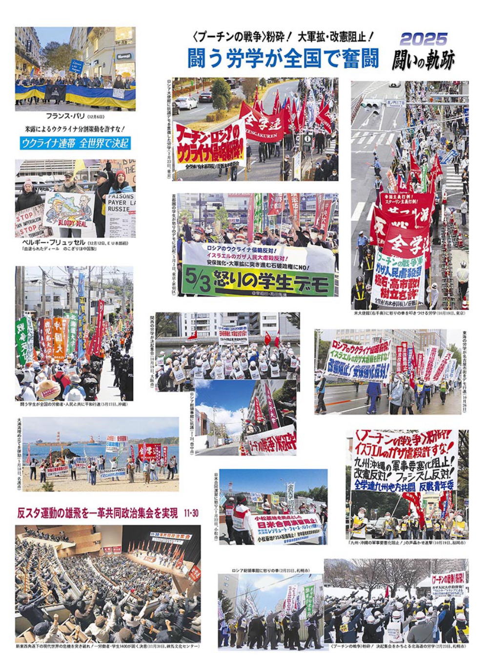 Students of Zengakuren from all over the country advanced on the Russian and the American Embassies and on the Diet 'Smash Putin's war!' War cries echoed through the venue: solidarity rally Let us fight for the building of a 'united front against fascism'! ![]() (pic) Solidifying their resolve to go on fighting: the closing rally [2] Denounce the dumping of earth into Oh-ura Bay! Stop the construction of the new US Marine Corps base in Henoko! Angry workers and residents gathered to protest at the forcible dumping by the Takaichi government December 6th, Protest Action in Henoko ![]() 'No to the Takaichi government's military buildup on an unprecedented scale!' Students from Kanazawa University staged a resolute demonstration in the central street of Kanazawa November 22nd