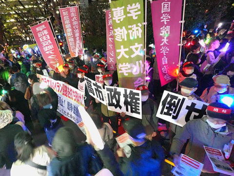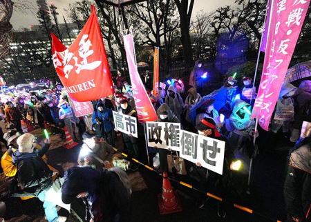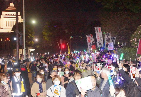 (pic right) 'Bring down the Takaichi government!' Chants went up at the Diet