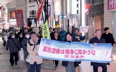 イラン侵略弾劾をも訴えわが同盟が檄 (3月10日、札幌市) |