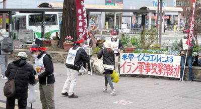 イラン侵略弾劾の情宣 (3月14日、神戸市・JR六甲道駅前) |