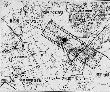 | 空自戦闘機砲撃事件の真相 福祉施設を標的≠ノしたF4戦闘機二機による砲撃を弾劾しよう! ―――北海道 北広島現地調査団 六月二十五日、午前十時五十五分ころ、南西航空混成団所属(那覇)の空自最精鋭部隊といわれる第三〇二飛行隊のF4EJ改戦闘機が、北海道の島松射爆撃場から東方向へ約五・五キロメートル以上も離れた北広島の福祉施設を標的≠ノして、建物とその一帯に20ミリ機関砲弾を一八八発もぶちこんだ。このまったく許しがたい前代未聞の暴挙にたいして、北のヒロシマの住民は「演習の完全中止」などを要求して起ちあがっている。 だが、既成左翼は、住民の怒りを選挙カンパニアへ解消しようとしているにすぎない。そのなかで、わが全学連のたたかう学生たちが、唯一、地元住民と連帯して、連日、北広島現地における砲撃弾劾の闘いの高揚をつくりだしているのだ。とりわけ、政府・防衛庁の「戦闘機は演習場内を飛んでいた」であるとか「電気系統の故障による訓練弾の誤射」とかといった発表のデタラメ性を暴きだしたわが全学連の現地調査団のビラなどは、地元の住民に熱い共感をよびおこしているのだ。 じっさい、七月八日と十四日に、福祉施設に隣接する町内会主催の住民説明会が開かれ、地元の住民は自衛隊の幹部を追及したのである。西地区連合町内会主催(八日)と北広島団地連絡協議会主催(十四日)の二回の説明会において、住民は「北広島団地まで飛行機は飛んできている」「福祉施設を標的にしたのではないか」と次々に自衛隊幹部を追及した。ところが、自衛隊幹部は、飛行コースすら具体的に説明できず、むしろ追及する住民にたいして「目撃したのはどんな機種か言ってみなさい」などと開き直ったのである。そして、つめよる住民にたいして、道警のデカどもがビデオをとったり写真をとるなどの不当弾圧を加えてきたのである。 いまや、福祉施設周辺の住民で自衛隊の説明を信じる人は、誰一人としていない。だが、既成反対運動のぜい弱さを見すかした政府・防衛庁は、次々と訓練を再開している。われわれは、F4戦闘機によるゲリラ戦を想定した空対地射爆訓練の反人民的な実態をあますところなく暴露し、奮闘する決意である。そのために、わが北広島現地調査団による調査によって判明した射撃訓練の許しがたい実態を明らかにしておく。 現地調査で判明した訓練の実態 A 自衛隊の発表はウソ八百! 怒りにみちた証言の数々 われわれ現地調査団は、福祉施設の入所者や通園者、さらに付近住民と交流し、空自による砲撃の実態について怒りに満ちたリアルな証言を得ることができた。