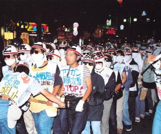 | <日教組第89回定期大会> 参戦に手を貸す本部を弾劾し大会を戦闘的に塗り替える! 日教組第八十九回定期大会が十月九〜十一日、東京・社会文化会館において開催された。十月七日、ついにアメリカ・ブッシュ政権は、イギリス・ブレア政権とともに宣戦布告なしにタリバン殲滅のための空爆を開始した。「米英のタリバンへの空爆テロ弾劾!」と大書されたわが同盟のビラを真剣に読む代議員たち。その通りだ、ただちに阻止の闘いに起ち上がるべきだ! 小泉政権は、すでに「人道支援」と称する難民支援物資輸送を口実にパキスタンに自衛隊輸送機を派遣し、「報復戦争」参加の下地づくりを強行している! さらには「日の丸」を掲げて米軍の軍事行動を支援するために「テロ対策特別措置法」や「自衛隊法改正」などの「参戦法」を十月二十九日に可決成立させた。小泉政権が現憲法の制約をとり払い、事実上の集団的自衛権行使=参戦に踏み出したという画歴史的一大反動攻撃のただ中で、日教組大会が開催されたのである。 犯罪的にも日教組指導部は、戦争政策を遂行する国家に奉仕する教師と子供の育成を目的とした「教育改革」と教育関連諸法の成立に全面的に加担するという歴史的大裏切りをはたらいてきた。この大裏切りを前提として、今まさに「参戦法」と称される「テロ対策」三法の成立を、日教組指導部が事実上容認したということは、日教組が「教育報国会」たるの実を示した、ということ以外の何ものでもないであろう。これを許さず、文科省の下僕と化した日教組指導部を弾劾し、かつ日教組運動をネオ教育報国運動へと変質させようとする執行部の企みに抗して、今日の日教組運動の危機を突破するための具体的闘いの方針を確立すること。これこそが良心的・左翼的代議員たちにとっての本大会の最大の課題であった。 会場に轟く「空爆弾劾のシュプレをやれ」の叫び 大会最終日、委員長・榊原が「団結ガンバロー」のために演壇に立った。その瞬間、「空爆弾劾のシュプレヒコールをやれ!」という野次が会場に響きわたった。大会が無事終了したことに安堵しきった榊原の顔が驚愕の様相にかわる。本大会の論議の核心問題であった「空爆反対、自衛隊海外派兵反対の具体的行動提起」を、まさに今この場においてやるのか否か、そのことを委員長に問いつめた一言に動揺しきった榊原。顔をこわばらせ口ごもりながら彼は、思わず「軍事的報復反対! テロ対策措置法粉砕! 自衛隊法改悪粉砕!」と叫んだのだ。 ここ十年来「反対」や「粉砕」などという表現をタブーとしてきたのが日教組ダラ幹どもなのだ。にもかかわらず今日、「教育報国会」に堕した日教組の委員長をして「粉砕!」と叫ばせたというこの一事に、今大会における良心的・左翼的代議員・傍聴者たちの苦闘の成果の一端は明確に示されているといえよう。「いまの野次が効いたぞ」「榊原は動揺したなあ」「まったくそのとおりだ、今すぐにでもデモをやるべきだ」などと代議員は口ぐちに語ったのだった。 戦闘的・良心的組合員は昼夜をわかたず奮闘し、日本が参戦態勢に突入した危機的状況を突破するために日教組指導部の思惑を突破し、大会を戦闘的にぬりかえるために全力を尽くしたのだ。 以下、見出し 日本参戦を容認し日教組の「教育報国会」化を策す本部 日教組指導部に屈服した「左派」県教組幹部 「空爆弾劾、海外派兵反対」の修正案を取り下げ 「日本参戦=海外派兵反対の具体的行動を!」―国会前座り込み闘争を牽引 「社会的パートナーシップによる協力・協働の学校づくり」を唱える日教組指導部を許すな! |