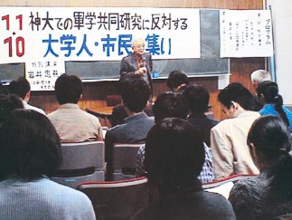 「有事立法粉 砕!」労・学・市民2万5千が決起代々木公園で開催された「STOP! 有事法制 12・1大集会」において、闘う学生たちは、「アメリカのイラク侵略阻止! 反北朝鮮の民族排外主義に抗してたたかおう!」と呼びかけつつ闘いぬいた〔詳報次号〕 「日米共同演習阻止!」日出生台に反戦の声轟く ―11・9〜11、全学連・九共闘が連続闘争 ![]() ![]() 全学連の学生たちは、十一月中旬からの日米共同統合演習に反対する闘いに決起した。大分県の日出生台・十文字原両演習場では、十一月十一日から二十一日までの十一日間、沖縄駐留のアメリカ海兵隊と陸上自衛隊との合同演習が強行されようとしていた。たたかう学生たちは、イラク軍事攻撃にむけたこの演習の強行に反対して、九日と十一日には日出生台・大分港現地闘争に、十日には在福岡アメリカ領事館への抗議闘争に、断固として起ちあがった。写真は、(左)九共闘が演習開始式粉砕に決起(11・11、日出生台演習場第二ゲート前) (中)米軍車輌に抗議の声をあげる労組員と全学連(11・11、大分港大在公共埠頭) (右)九州ブロック総決起集会で労組員と連帯し闘う全学連(11・9、大分県九重町) 神戸大で軍学共同有事研究反対の闘いが前進 11月10日には多くの労働者・学生・市民が参加して集会を開催し た。 |