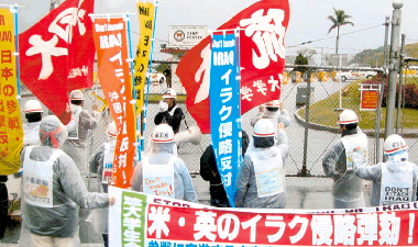 「米英のイラク侵略弾劾!」(カデナ基地第1ゲート前、3月21日) |
