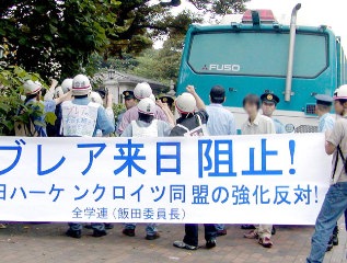 われわれは、この暴挙を絶対に許さない! いま、イラク全土で、地下に潜ったサダム親衛隊や武装したムスリム戦士たちの米英占領軍にたいするゲリラ闘争が展開されている。七月十六日には、バグダッド空港で米軍のC130輸送機に向けて地対空ミサイルが発射された。この攻撃を受けて、米中央軍司令官アビザイドは、「軍事用語でいうゲリラ戦だ」と、ベトナムの悪夢を思い浮かべながら、顔面蒼白になって認めた。連日果敢に展開されるゲリラ攻撃によって、米兵の死者は増え続け(すでに九一年の湾岸戦争時の戦死者を越えた)、米英占領軍はいまや、「衝撃と恐怖」に苛(さいな)まれている。 この戦地イラクに、小泉政権は、ブッシュ政権の要請にもとづいて、重武装した自衛隊を派兵しようとしている。「戦って相手を殺す場合もないとは言えない」と、自衛隊が米軍とともに交戦することを、小泉は、公言してもいる。 憲法九条に示されている「不戦」の理念を公然と踏みにじる自衛隊のイラク派兵にたいして、社共既成指導部は反対運動にまったくとりくまず、選挙運動に没入している。もはや一刻の猶予もならない。不屈に反米・反占領闘争をたたかうイラク・中洋人民と連帯し、すべての職場・学園から、いまこそ反戦の闘いを巻き起こせ! すべてのたたかう仲間は、八月三日の国際反戦集会に結集せよ! 第三のベトナム≠ヨの道――イラク占領政策の破綻 「大義なきイラク戦争」の暴露 イラクへの自衛隊派遣に邁進する小泉政権 社共の闘争放棄を弾劾し派兵阻止の闘いに起て |