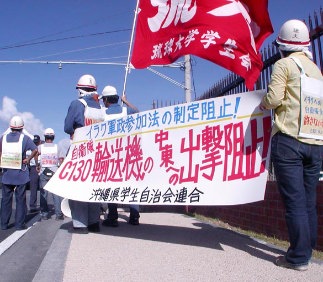 自衛隊那覇基地にむけて抗議する沖縄県学連(7・11) | |