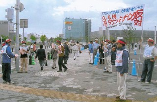 北大生が防衛庁長官石破を追及! 8・8札幌タウンミーティング反対闘争 コンベンションセンター前で大情宣 |