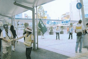 八月十三日に発生した米海兵隊ヘリの沖国大本部棟への墜落・炎上事故を弾劾する闘いに、全学連の学生たちは全国各地で決起した。 この米軍ヘリは、劣化ウラン弾を搭載して、イラクに出撃するための訓練をおこなっていたにちがいないのだ。おりしもイラクのナジャフにおいては、米軍の全面攻撃にたいして、サドル派マフディ軍が決死的闘いを展開していた。学生たちは、反米反占領闘争をたたかうイラク人民と連帯してたたかいぬいた。 |