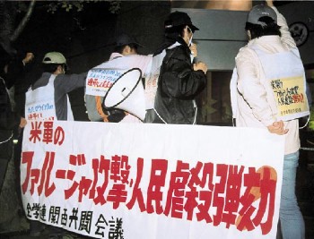 米軍のファルージャ総攻撃にたいして、全学連は、全国各地において断固たる抗議行動に起ちあがった。 |
