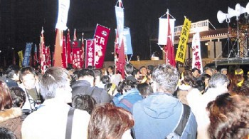 労・学・市民3500名が決起 12・10大阪平和人権センター集会 〇四年十二月十日、大阪市北区の扇町公園で大阪平和人権センターの主催する「自衛隊はイラクから撤退を! 派兵延長を許さない12・10大阪集会」が三五〇〇名をこえる労働者・市民・学生を結集して開催された。 |