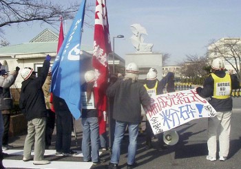 たたかう労学が陸自第十師団に弾劾の拳(一月十五日、守山駐屯地前) |