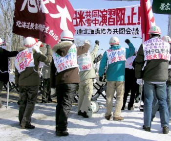 日米共同雪中演習阻止闘争(2・28、千歳)(写真へ)