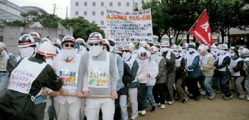 一〇七名の生命を奪ったJR西日本会社を弾劾せよ 去る四月二十五日午前九時十八分ころ、西日本旅客鉄道会社の福知山線(=通称宝塚線)において、死亡者一〇七名を数える大惨事がひき起こされた。 宝塚駅を出発した七両編成の快速列車が、塚口・尼崎駅間の半径三〇〇bのカーブにさしかかった直後に脱線転覆し、先頭の二両が近接するマンションに激突して車両の原形をとどめないほどに大破し、三両目から五両目までの三両も脱線した。一〇七名におよぶ人命が奪われたうえ、四六〇名もの乗客が重軽傷を負わされるという事態が生みだされたのだ。 まさに、一九六三年の国鉄鶴見事故いらいの大惨事をひき起こしたJR西日本会社にたいして、われわれは腹の底からの憤りをこめて弾劾する。「営業収益拡大」を掲げて、超過密ダイヤの定時運行=k制限速度をオーバーしないかぎり定時運行など絶対不可能な超過密ダイヤ!〕をがなりたて、列車の安全運行などまったく無視してきたJR西日本会社。こうした西日本会社の経営政策・労務管理政策によって尊い生命を奪われた人々の遺族ならびに重軽傷を負わされた乗客とともに、われわれは会社当局の責任・人非人的労務管理政策を徹底的に糾弾するものである。 JR西日本会社の幹部たちは、当初、小石を車輪でつぶしたときにできるレール上の粉砕痕≠ェあったと発表した。会社当局は、事故の原因が「置き石」などにあったかのようにおしだすことによって、自己の責任を回避しようとさえしたのだ。そればかりではなかった。当該快速電車の高見運転士が(車掌時代の二〇〇二年に)列車が停止目標をオーバーランしたときに車掌弁を操作しなかった、という理由で訓告処分を受けたこと。また、二〇〇三年にはうつろな目≠して乗務していたという「乗客」(を装った管理者だ!)からの通報によって、厳重注意処分を受けたこと。そして昨年六月(運転士になってまもない時期)には、停止目標を一〇〇bほどオーバーランしたという理由で、訓告処分と十三日間の「日勤教育」を受けたこと。このような高見運転士の経歴(運転ミス・処分歴)をあえて発表することによって、彼が運転士としての資質に欠けるかのような印象を一般の人たちに植えつけようと彼らは狂奔したのであった。 JR西会社の幹部たちはこのような姑息な手段を弄して、この大惨事が会社当局の定時運行優先・安全無視の経営政策・労務管理政策によってひき起こされたのだということを隠蔽し、会社の責任を回避しようという、徹頭徹尾、破廉恥な対応に終始したのである。 だがいまや、JR西会社の多くの真面目な社員たちが会社当局の責任を質し、事故の原因を究明しようと勇気をもって立ちあがりつつある。また、彼らの意をも反映したマスコミもJR西会社当局のあまりのひどさに、当局を一定ていど厳しく追及し報道しはじめている。これらによって、JR西会社当局のかずかずの犯罪が今、次々に露見し、社会的にも明らかにされつつある。 大事故に直結した無理な回復運転 JR西会社発足以来の利益優先・安全運転無視 会社の労務政策を率先して尻押ししてきた御用組合JR西労組 すべてのJR労働者諸君! JR西会社の、安全を無視した労務管理政策を粉砕せよ。 会社と一体となって、「日勤教育」の名による労務政策を下支えしてきた御用組合=西労組ダラ幹を弾劾し、すべてのJR労働者はJR西労組(JR連合)の解体をめざして奮闘しよう。 労働者にたいする悪らつな攻撃はJR西日本だけの問題ではない。JR東海やJR東日本でも、自治体職場や郵政職場、あらゆる民間職場でも、労働強化(および組合破壊)のための労務管理が日々強められている。しかも、これは小泉政権の新自由主義的「構造改革」政策に規定されているのであり、「戦争をできる国」へ飛躍するための改憲攻撃・国家総動員体制づくりと一体の攻撃にほかならない。このことをも暴きだしつつたたかおう。 定時運行最優先・安全無視の労務管理―利潤第一主義の経営政策を許すな! |