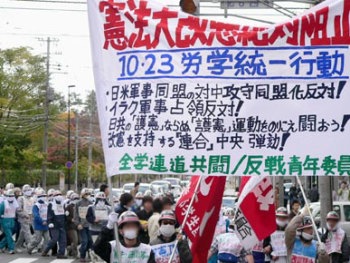 | 10・23全道労学統一行動が高揚 十月二十三日、全学連北海道地方共闘会議と反戦青年委員会は、〈改憲阻止・イラク反戦・反安保〉を掲げて、札幌において労働者・学生統一行動を断固かちとった。 |
