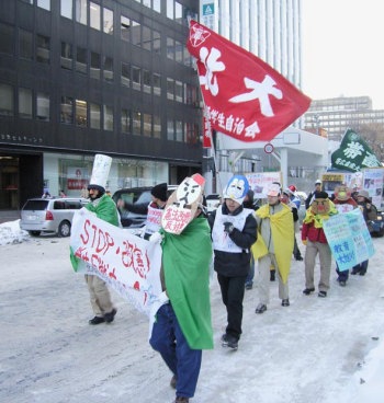 〇五年十二月十八日、北海道大学農学部学生自治会などのよびかけのもとに、北海道のたたかう学生たちは札幌市中心部において「STOP改憲! 学生反戦ウォーク」にたちあがった。 |