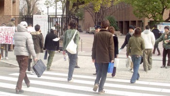 二〇〇五年十二月十三日、自衛隊のイラク派遣期間の再延長を目前に控え、東海地方のたたかう学生は、再延長を閣議決定した小泉政権に断固たる弾劾の声を突きつけるために、愛知大学において「許すな! 小泉政権による『戦争のできる国』づくり 憲法改悪反対!安保強化反対! イラクから自衛隊は撤退しろ! 反戦行動 in 豊橋」昼休み集会をおこなった。 |