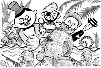 このかん、ブッシュの野郎が在沖海兵隊のグアム移転を「沖縄の負担軽減のため」などとぬかして、この移転費用の六〇%(七一〇〇億円)もの拠出にポチ公小泉がシッポ振って応じた、というので、許せねえ、と職場の仲間にくっちゃべってきた。アメリカがグアムにつくる基地の建設費用になんでオレらの税金を使うんだ、とな。そもそもこの移転は、米・日が一緒になって中国を軍事攻撃できるようにするための在日米軍の再編と自衛隊の組み込みの一環だ、日米新軍事同盟を許すな、と訴えてきたわけよ。……「アタシもよ」……けんど、移転先のグアムのことは、アメリカ領というぐらいしか考えてなかった。……「そうねえ」……んで、慌てて調べてみたら、波をチャプチャプ、帝国主義打倒! てぇわけよ。……「どういうこと?」…… まずな、グアム島は、淡路島よりちょっぴり小さいくらいの島だ。この島の三〇%を今も米海軍・空軍基地が占め、米軍がウジャウジャひしめいている。ここにさらに海兵隊基地を造ろうてんだ。ヤンキーの野郎は「沖縄の負担軽減のためにオレの領土に移してやる」なんて恩着せがましく言ってるけんど、とんでもねえ。そもそもなんでグアム島がアメリカ領なんだよ。……「そうよねえ」……あそこには、紀元前二〇〇〇年ころからチャモロ人が移り住み暮らしてきているんだ。ところが一五二一年にマゼランが勝手に「発見」しスペイン領にしてしまった。このスペインとの戦争に勝ったアメリカが一八九八年に「戦利品」としてフィリピンなどとともに分捕ってアメリカ領よ。チャモロ人にとって「マゼラン以後」は、欧米列強の侵略と抑圧にたいする血と涙の抵抗と敗北の歴史なんだ。……「そうなんだ」…… それだけじゃねえ。グアムと沖縄は、米・日両帝国主義の激突の最前線に立たされ、悲惨な体験で結びつけられてもきたんだ。……「ふーん」…… グアム島は、太平洋戦争の初っぱなに日本軍が占領し、一九四四年に米軍が奪回したんだが、この時、全島民をまきこんだ凄惨な地上戦が展開され、多くの島民が殺された。そして翌一九四五年、米軍はこの奪回したグアム島から五五万人の大艦隊を出撃させ沖縄に上陸(四月)、かの地獄≠フ地上戦に突入したわけだ。つまりグアムと沖縄は、日米戦争の最前線で地獄≠フ地上戦に叩きこまれ、その挙げ句の果てに、米軍が居坐り、アメリカの軍事侵略の最先端に立たされ続けてきている島なのだ。経済的には軍事基地に頼らざるをえなくされ観光産業で補完というのもそっくり。ちなみにグアムの年間一〇〇万の観光客の九割が「日本に一番近いアメリカ」とか言ってやってくる日本人。……「歎かわしい」……でもって今度は、グアム―沖縄(日本)にまたがる米軍再編をごり押ししてるっちゅうわけだ。……「絶対許せない! だけど、波をチャプチャプ、てのは?」…… おう、そうそう。グアム島ってのはな、<ひょっこりひょうたん島>の元祖(モデル)なんだってよ。島の形がひょうたんに似ているからだけじゃない。登場するあの個性的なキャラクターは、原作者の井上ひさしがグアム島で会ったチャモロの人たちにヒントを得てひねりだしたものなんだそうだ。たとえば当時のカルロス・カマチョ知事をもじってつくられたのが、ドン・ガバチョ。……「アタシ、大好き! きょうがダメなら明日にしましょ。明日がダメならあさってにしましょ。あさってがダメならしあさってにしましょ。どこまでいっても明日がある。ハイ、チョイチョイチョ〜イのドン・ガバチョ」……オメエ、変な趣味あるな。……「だからアンタみたいのに引っかかっちゃったのヨ」……ウッ。……ともかくこの楽天性が、チャモロ精神の真髄なんだってよ。常夏の島で豊かな海の幸とキャッサバ・ココナツなどに恵まれ、大家族的紐帯を大事にするなかで営々と培われてきたものなんだろうな。 ところが、米軍の戦略拠点として維持・強化するために、あくまでもグアム島をアメリカ領として支配し、この伸びやかなチャモロの人々の生活をふみにじり続けているのが、「自由」「民主主義」の「普遍的価値」なるものを振り回しているブッシュてえわけだ。グアム住民には米市民権はあるけんど米選挙権はない。ここでもまた二重基準(ダブルスタンダード)よ。……「そんなガラクタいらないけど、ほんとにアッタマくるね」…… だから、チャモロ人青年の訴えを、ヤンキー帝国に抑圧され続けている<ひょうたん島>の叫(おら)び声としてうけとめ、彼らと連帯して、反戦・反基地・反安保の闘いを断固としておしすすめにゃならんと思うのだ。……「ヨーシ、ガンバロー! アンタもたまにはいいこと言うねぇ」 |