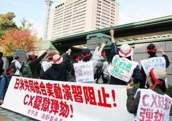「日米共同演習阻止・CX疑獄弾劾!」 日米新軍事同盟の強化に反対して闘う学生たち (11・5、防衛省前) |