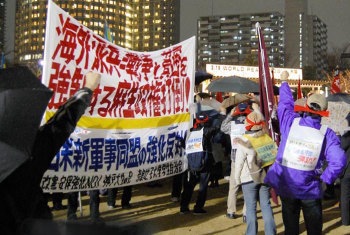 「日米新軍事同盟の強化反対!」を掲げ闘う関西共闘 (3・19、大阪・扇町公園) |