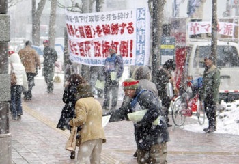 雪の札幌駅頭で労働者・学生が情宣 (3月11日) |