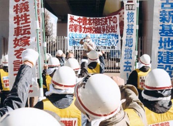 | 一月二十四日、全学連東海地方共闘会議の学生と名古屋地区反戦の労働者は、全国各地でたたかう労働者・学生と連帯して全東海労学統一行動に断固として決起した。日共中央や社民党をはじめとする既成反対運動の指導部が、辺野古新基地建設を阻止する労働者・人民の闘いを鳩山政権にたいして公約を守って≠ニお願いするものにねじ曲げようとしていた。「反安保」を完全に投げ捨てた日共中央翼下の既成平和運動をのりこえて、反戦反安保闘争の高揚をかちとるためにわが労働者・学生は決起したのだ。 | |