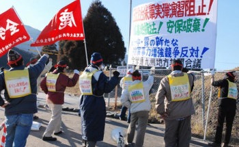 日出生台演習場ゲート前で闘う九共闘 (1月24日) |