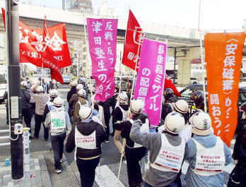 闘う学生を先頭にロシア総領事館前で抗議 (2月24日、大阪府豊中市) |