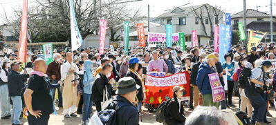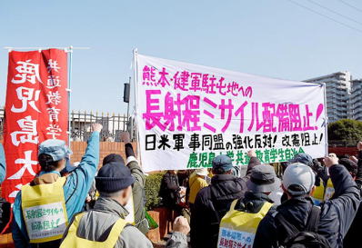 「長射程ミサイル配備阻止!」 労・学・市民が健軍駐屯地を包囲 2・23 熊本 |