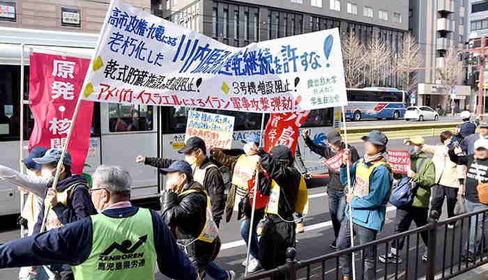 「川内原発の運転継続を許すな」 鹿大生 労働者・市民と怒りの拳 3・8かごしまパレード |