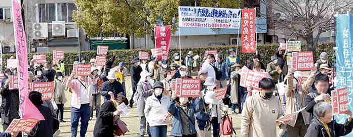 三月八日、鹿児島市において、「福島を忘れない『絶対ダメ! 原発延命の乾式貯蔵』 ストップ川内原発! 3・8かごしまパレード」が開催された(主催は「ストップ川内原発! 3・11鹿児島実行委員会」)。鹿児島県各地の労働者・市民三五〇人が結集し、「原発止めろ!」の声をあげた。たたかう鹿児島大生は、「原発大国・日本」再興の道を突き進む高市政権への怒りに燃えて決起した。 |