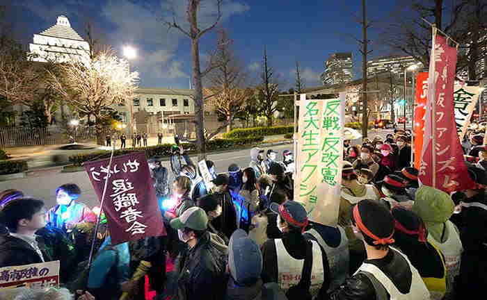 全国から結集した全学連は、「米帝・イスラエルのイラン侵略粉砕! 日本国軍の出兵阻止!」の旗高く、闘う労働者・市民とともに闘いぬいた。 |