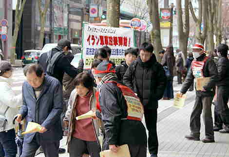 イラン攻撃弾劾の声轟く 3・13 香林坊でわが同盟が情宣 |