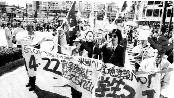 students waged a protest at the metropolitan government building (12 Apr.).(Photo)- Ishihara stirred up a controversy by remarking that foreigners in Japan could stage a riot following a major earthquake and urging the Self-Defense Forces to maintain public security in such emergencies ... using the word 'sangokujin', literally 'people from third countries', that refers to people from the former Japanese colonial possessions of Taiwan and the Korean Peninsula, as well as their descendants, and now widely regarded as a derogatory term (from Japan Times, 11 Apr.). [2] Stop building a new US military heliport! Oppose the Okinawa G8! Never allow the official leaders to chorus for the 'Summit fever'! Let us fight it out!