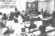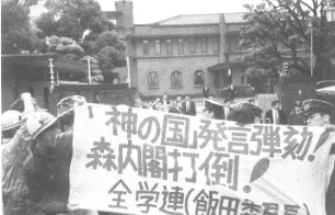 Overcome the official 'defend the Constitution' movement degenerate and rotten! - Intensified offensives aimed at trade unions struggling against the today's version of the Industrial Patriotic Movement. - Overcome the rotten official leadership! Advance struggles against schemes for the Constitutional revision and military build-ups! [2] Zengakuren 19 May: nation-wide protests against the plan to turn national universities into independent administrative institutions (in Tokyo, Hokuriku, Tokai, Kansai, Kyushu and Okinawa regions). ![]() - 'No revision of the Fundamental Law of Education!' Students surrounded the headquarters of the Education Ministry. - Also protested against Mori's 'land of the gods' remarks at the gate of the Diet building. (Photo) 14 May: Zengakuren welcoming meeting for freshers in Tokyo, rallying fresh forces for struggles. - 'Let us fight to break war preparations!', Mr. Iida, Chairman of the Zengakuren. - 'Leap to be the Subject who changes the world today!', Comrade Asakura for the JRCL greeted the participants. 30