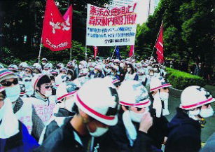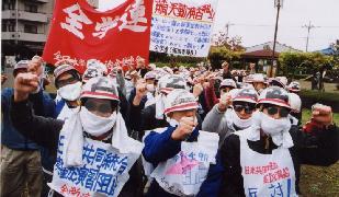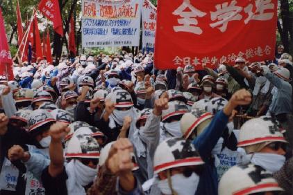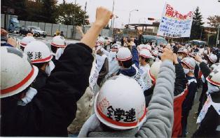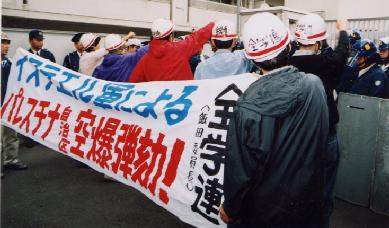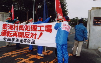 Fight together by denouncing the official JCP / SDPJ leadership abandoning the anti-Security Treaty cause! - The failed 'revolt' by Kato and Yamasaki and waves for another reorganization of the Japanese politics - Divergences over breakthroughs of the political and economic difficulties - Advance "antiwar, anti-neofascist reaction" struggles [2] 20 Nov.: Stop resuming operations of the nuclear fuel reprocessing plant! Militant students demonstrate against the Tokai plant whose facility exploded in 1997 exposing 37 workers to radiation. (Photos below)