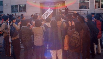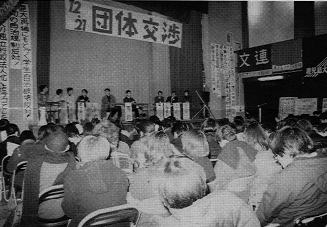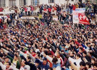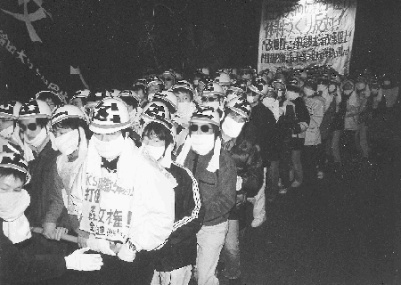 Workers' and students' anger against US-Japan joint mid-snow military drills in Hokkaido 14 Feb: Zengakuren Hokkaido protests at the Yausubetsu range and demonstrates through a local town. 20 Feb: Zengakuren Hokkaido protests at the SDF Eniwa base. 17 Feb, a trade union-based Hokkaido Peace Forum's region-wide rally: students struggle in the forefront together with militant workers. (Photo left above.) No US Forces' live fire drills! Zengakuren Kyushu fights at the range and imbues an SDPJ-led rally with the anti-Security Treaty cause. (Photo right above.) 1 March Zengakuren's street propaganda against the sub collision and anti-Iraqi air raids 'Give an angry punch to Bush and Mori!' 3 Feb prefecture-wide students' action in Okinawa. Anti- Security Treaty calls resound throughout Naha City. [3] Kaleidoscope 2001 - Japanese people also 'remember Pearl Harbor!': truth behind the 'apologies' 'without arrogance'. - Criticisms from other Asian countries against an ultra-nationalist school textbook: responses from the lame duck's cabinet at sixes and sevens. - Mad-cow disease: Europeans kill cattle, which the honorable leader asks them to give for having his people eat. - A JCP candidate answered a critical question at a local election meeting: 'What the party calls the practical use of SDF troops is not for "emergency" but "in the event of a sudden violation against the sovereignty"' ??? [4] Internal strife of the LDP over the KSD and the secret funds scandals 1. Exposures and counter-exposures by the Hashimoto and the Etoh-Kamei Factions - LDP politicians fed with dirty money from the KSD association. - Murakami's arrest engineered by Nonaka and Aoki. 2. Embezzlements of the secret government funds by officers exposed with the aim to break the 'bureaucratic resistance against reforms' - The Foreign Ministry forced to dismiss the Director-General of the Secretariat - Outcry for a 'politics-led administration' 3. Power struggles among conservative politicians over a successor to Mori [5] A draft by the LDP Administrative Reform Promotion Headquarters for a worse reform in national personnel systems - Aims of the draft. - For changing the national personnel system to correspond to the government reorganization - Leaders in the Prefectural and Municipal Workers' Union helping the negative reform [6] Labour Front Topics Tokyo Prefectural Board of Education revises its 'objective' and 'policy' of education: reactionary offensives storm various regions. No introduction of the 'Rising Sun' and the 'Reign of the Emperor' in leaving-school ceremonies! Stop the education ministry and the prefectural board of education from breaching the 1971 agreement! JRCL Hokkaido Regional Education Workers' Committee - A mass offensive for breaking the gains and a worse revision in school regulations. - Leaders of the prefectural teachers' union yielding to the ministry and the educational board. - The leadership is exposing the ranks to the repression! Fight back in opposition to their betrayal! 11-14 Jan the national meeting for education research sponsored by the JCP-led teachers' unions Criticisms erupted against the central leadership and JCP-led academics at the peace education commission etc. [7] Criticizing the JCP-led trade union centre Zenroren's policy for the spring offensive 2001 Call for 'cooperation with Rengo' just to complement the industrial 'patriotic' movement 1. Zenroren leaders crying for 'cooperation in three issues'. 2. No awareness of crisis to neofascist reactions. - No sensibility to the critical situation of class struggles in Japan. - Omission of the economic analysis. 3. Self-repression on demands for higher wages and acceptance of restructuring - Demands for raising wages replaced by those for minimum wages. - Opposition to restructuring replaced by demands for 'managerial reform' - Pursuit for 'manufacturing' based on the unity between employees and the employer 4. Introduction of the JCP line 'reform of Japan's politics' into labour movement. [8] Reading Early Writings by Kan'ichi Kuroda - Touched with the young Kuroda's idee and pathos. Critical review Satoshi Kohchi's The Young Kuroda: Critical Biography - The militarist boy's repulsion by the biographer self-exposed TOP |