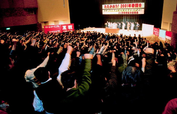 through the 'post-Mori' politics! - A farce over the proposal of the 'non-confidence motion' and its rejection - A keen struggle for power over breakthroughs of Japan's impasse - Smash neofascist reactions! [2] Join the 113th Zengakuren Central Committee meeting! (22-23 March in Tokyo): the 40th anniversary of its historic 27th meeting. - Strengthen the battlefront of students for antiwar, anti-Security Treaty, anti-Constitutional revision struggles! JRCL condemns the 5 March police raids! - On the national and regional offices, all at once! Won a suit against the state! - Nagoya District Court judges the police raid on the JRCL Tokai office (in 1998) illegal. [3] Kaleidoscope 2001 - The 'Mori-bund' Mori Cabinet: the tug-of-war going for his successor, but a farce. - God damn! Although doing the same as 10 years ago... (Bush and Powell) - Ligachev and Yakovrev 10 years on: interviewed by a Japanese right-wing paper. - The former Chair of Rengo rewarded with the Imperial Order. Special: The Spring Labour Offensive 2001 [4] Telecommunication industry Leaders are distorting the offensive into a 'sales battle for Myline carrier registration'. Fight it in opposition to them! 1. Their 'spring offensive' line: for defending NTT firms. 2. Priority to completion of the 'midterm business project'. 3. Negation of wage raise. 3. Introduction of a merit-, performance-based pay in the bonus system. 4. 'Contribution to the national I.T. strategy': a flag-waver for the industrial patriotic movement! 5. Positive enmeshment into corporate organizations. [5] Auto-industry Cadres of the Confederation of Japan Automobile Workers' Union making full cooperation in a massive offensive for restructuring. Fight back by denouncing them! - Outcries for, not 'offensive for better life', but 'reform of the offensive'. - Criminal nature against workers with their demands 'for a wage level according to a high additional value productivity'. - Positive response to monopoly capitalists in the name of 'each subjective, independent contribution to the formation of the average'. - 'Rotation of unemployment' policy in justification of their full cooperation in job cuts. - 'Stakeholder' theory of a trade union for its self-destruction. [6] Chemical industry Never allow leaders to replace the offensive with 'joint consultations for strengthening corporate managerial foundations'! 1. Chemical industry in Japan in its major reorganization. 2. Never allow leaders in the Chemical League to complete their class conciliationist stand! 3. Organize a militant offensive from our workplaces! Topics Nissan bonus payments to meet the trade union's demands: Carlos Ghosn boasting achievements of his major restructuring to submit the leaders. [7] Electrical Electronic and Information Union The central leadership of the Union abandoning the wage struggle in the name of a 'safety net for wages and employment' - What they call 'a comprehensive spring offensive for better life'. - The labour aristocrats crying for 'breakthrough of crisis' of firms and the industry - Demands for higher wages abandoned. - Responses to capitalists' introduction of performance-based pay. - Submission to neo-liberalism. - Fight back in opposition to the labour aristocrats denying the contradiction of interests between employees and the employer! [8] Review on Satoshi Kohchi's The Young Kuroda: Critical Biography - A miserable pushy sale of his own view on the 'Hungarian Revolution'. TOP |