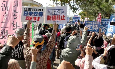 A protest rally on the day before the exercises, at Katsuren outpost, Oct.19 (pic above right) Sapporo Indignant protesters rallied against the resumption of Tomari reactor No. 3 'Sayonara to Nuke' rally in Hokkaido, Oct. 18, Sapporo