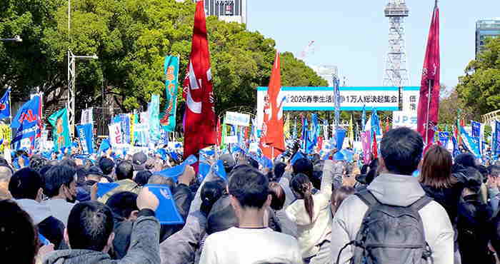 (pic right) Workers gathering together to express anger 'Condemn the armed attack on Iran! No to the dispatch of Japanese troops!' Students of Kobe Univ. and Nara Women's Univ. ardently appealed to the public March 14th, Kobe ![]() 'Win a big, across-the-board wage raise!' JRCL handing out leaflets and appealing to workers participating in a shunto rally sponsored by JTUC Hokkaido March 10th, Sapporo ![]() (pic) JRCL also appealing: 'Let us denounce the aggression against Iran!' Takaichi to offer state funds to the Trump empire [4] The Takaichi government is rushing to the standardization of municipal systems based on the government cloud Golden Dome program The Trump administration planning to expand military capability to outer space [5] Series Workers struggling in the workplace Anger whipped up into flame Postal service Collection and delivery workers in the provinces suffering harsh working conditions and hard work Airport workers in Okinawa Unduly harsh work forced upon them [6] Accuse Putin of repressing his people by using the 'foreign agent' law Poetry Four years since Russia's invasion of Ukraine TOP |