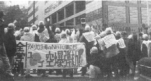 Lessons of the Partisan War led by Stalinist Tito that beat back Hitler's aggression into Balkans are still fresh in Yugoslavian people's minds. With Serbian Orthodoxy as spiritual backbones, people in Yugoslavia are now intensifying their antagonisms against green-and-pink-coloured Euro-socialism and solidifying their national unity. Moreover, combined with the ethnic grudge dating back from the Ottoman Emperor's conquest, they are resolved to fight back the imperialist aggression. Milosevic, a nationalist-turned Stalinist, has decided to join the state union with Russia and Belarus and appealed to the Slav nations for support. Ruinous Russia, however, has not been able to apply any effective countermeasures against the imperialist barbarity because of its economic and social bankruptcy and military decline. Thus the Boris Yeltsin regime has totally lost its political authority also. The atrocious NATO bombing of Yugoslavia is a vivid representation of the tragedy after the collapse of Stalinist systems of the USSR. The Balkan affairs have heralded the beginning of a new form of existence of war in our days, which is entangled with tripartite religious antagonisms among Catholicism, Eastern Orthodoxy, and Islam, as well as ethnic or national oppositions between Slavs and Western nations. Anglo-American imperialist state powers involved Euro-socialist governments in the bloody bombings, and thus succeeded in the actual and ideological destruction of Green and Pink parties and their state powers as well. This is a historic event following the collapse of Stalinism that occurred in 1989-91. In 1992, in 1997, and once again in 1998, hedge funds raged around the world and caused global financial crises; none other than this is the background that gave an ostentatious prosperity to US imperialism. Workers of the world must not overlook this reality. Workers of the world! At this very moment, the US and European social-democratic governments are murdering people in Yugoslavia. Workers in every country must organize a struggle to overthrow the state power of their homeland that does not give up bombing Yugoslavia! We in Japan staged urgent protests within the day of the first air strikes. We have been struggling also against the Japan's Maritime Self-Defence Force firing at 'suspicious boats' on Japan Sea, which occurred on the same day of the bombing of Yugoslavia. We have been fighting to oppose the attempt to build a combat-ready order based on the new US-Japan Defence Co-operation Guidelines and to smash this 'war manual' for emergent 'situations in areas surrounding Japan'.