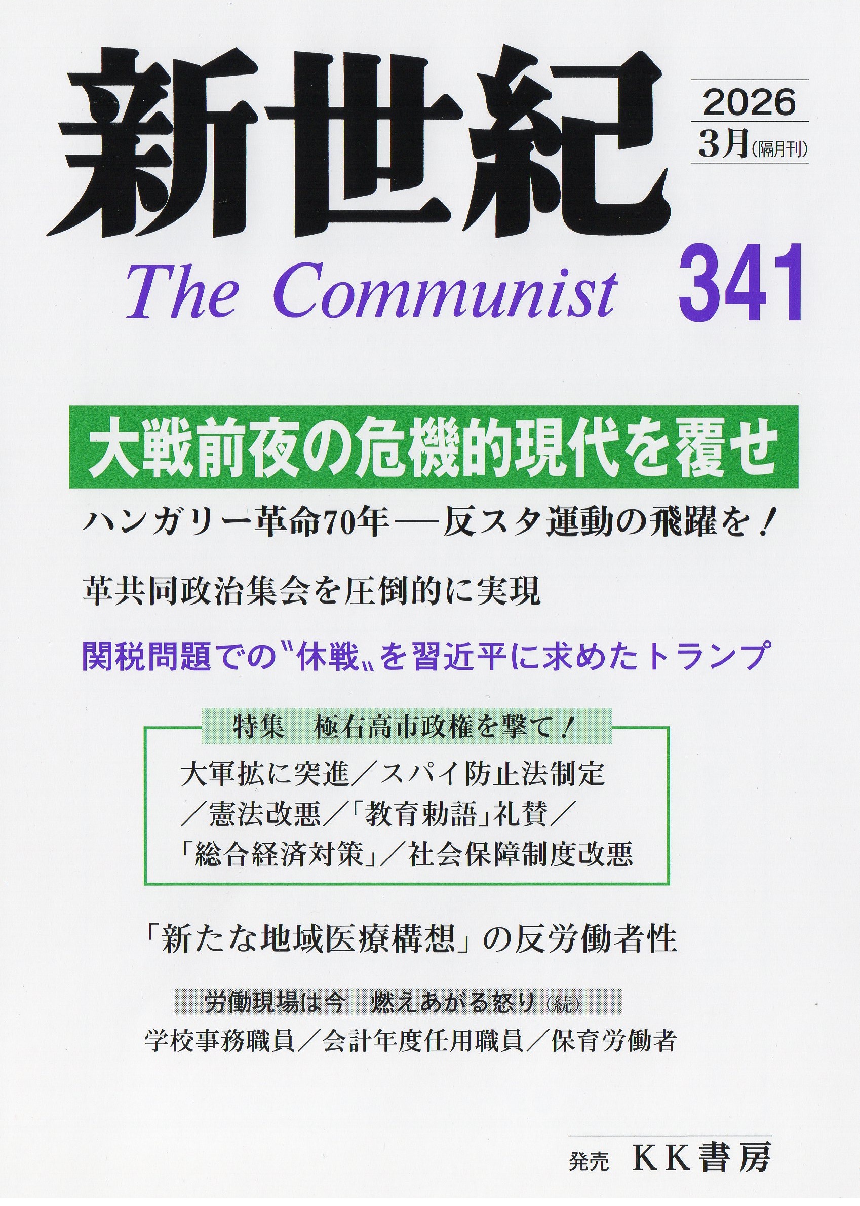 | 好評発売中 新世紀 The Communist 341 2026年3月 定価(本体1200円+税) 革共同 革マル派 機関誌(隔月刊) 発行所 解放社 発売元 有限会社 KK書房 |