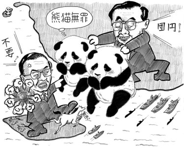 団団、円円 海峡を越えられなかった熊猫 ![]() 一年間にわたってくりひろげられてきた、中国から台湾への二頭の熊猫(パンダ)「贈呈」をめぐるスッタモンダ。三月三十一日に、陳水扁は、中国・胡錦濤にパンダ受け入れ拒否を意思表明。これで「パンダ贈呈騒動」は大団円? 政争の具にされたパンダにしてみればいい迷惑。ことの発端は、野党・国民党の連戦が訪中(昨年五月)した際に、胡錦濤が「国共合作」の象徴として、パンダを台湾に「贈呈」すると申し出たこと。中国が外国にパンダを贈る際には、ふつうは希少動物の国際取引を禁じた「ワシントン条約」にもとづいて、貸与という形式を取る。今回胡政権があえて台湾に「贈呈」することにしたのは、「一つの中国」を認めない陳水扁を揺さぶる思惑を込めてのこと。中台間のパンダの取引は、あくまでも「国内取引」の枠内であって、条約には抵触しないというわけだ。 しかも二頭の名前は、離散した肉親が再会するという意味の中国語「団円」にちなんで、「団団」と「円円」と名付けられたのだから、「(中国は)ワシントン条約を遵守しろ」と陳水扁がパンダの受け入れを断固拒絶したのもさもありなん。 春節(旧正月・一月二十九日)の総統演説において陳水扁が掲げた「今年の三大目標」。それは、@「国家統一綱領」の廃止、A台湾名での国連加盟、B新憲法の制定。これにもとづいて、「国家統一綱領」を事実上廃止(二月二十八日)。また与党・民進党は、新憲法制定にむけて四月から党草案の検討に入ったり、台湾海峡危機(一九九六年三月)から十周年にあたって、「(中国への)併合反対」「民主主義擁護」を掲げた官製デモを組織。胡錦濤政権からの「台湾独立綱領」の放棄を条件にした対話の提案にたいしては、「中国と台湾は『一辺一国』(別々の国)だ、台湾に、ああしろこうしろというのは誠意に欠けている」とニベもなく突っぱねた。 この陳政権・民進党にたいして、中国政府は「独立勢力と独立活動に断固反対し、これを抑えこむ」(賈慶林、三月三日、人民政治協商会議)とか、「祖国統一はすべての中国人の共通の願いだ」(首相・温家宝、三月五日、全人代)とかと恫喝をもって応えた。 陳水扁が中国からの独立指向を今日ことさらに強調し、「一つの中国」を標榜する国民党との違いをおしだしているのは、直接的には二〇〇八年の総統選をひかえて、高支持率を得ている馬英九の国民党に政権を奪取されることを恐れているからだ〔国民党はすでに立法院(国会)の過半数の議席をおさえている〕。そしてなによりも、台湾併呑を企む北京官僚が、この国民党と連携しつつ、次々に仕掛けてくるアメ≠ニムチ≠フ攻勢に焦っているからなのだ。 このかん中国政府は、陳政権を揺さぶるためにあえて国民党との協議を重ね、そこで「約束」したものという形式をとって、台湾産の果物についての「輸入ゼロ関税」措置をとったり(二〇〇五年八月)、台湾企業の対中国投資をさらに拡大・促進するために、台湾の対岸に位置する福建省に「経済特区」を建設する構想をブチあげたりしてきた。これらは、経済をテコに統一を促進するという意味の「以商囲政」政策の一環なのだ。そして同時に中国政府は、台湾有事に備えて人民解放軍の現代化・ハイテク化を着々と進めている。 こうした中国政府による台湾併呑のための権謀術数に、いらだちを強めているのがブッシュ政権。彼らはこの三月に、馬英九・国民党主席をワシントンに異例の厚遇で迎え、米製最新兵器の購入を公約させた。ブッシュ政権は兵器をエサに馬をひきつけ、国民党内の米製兵器購入に反対する部分と馬との間に亀裂を入れることを策している。もって中国政府との関係強化をすすめる国民党を弱体化させることを狙っているのだ。 「一つの中国」をかかげて台湾併呑を企む中国政府と、「中国のライバル化阻止」に躍起のブッシュ政権。「大団円」などは夢のまた夢≠ニいうべきか。 |