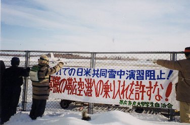米軍機乗り入れに抗議(1・30帯広)