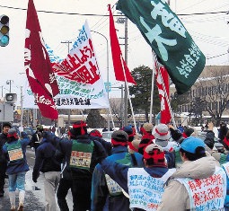 陸自第二師団駐屯地に向けて闘う労学が戦闘的デモ