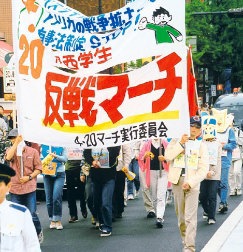 小泉政権は四月二十六日に、「武力攻撃事態法案」をはじめとする有事三法案を衆院本会議で審議入りさせた。戦闘的労学は、アメリカ帝国主義・ブッシュ政権によるイラク・中東への侵略戦争に積極的に参戦するための有事法の制定にしゃにむに突進する小泉政権にたいして、一大反撃の痛打を浴びせたのである。 小泉政権の一大攻撃をまえにして、無力な対応に終始している社・共既成指導部を弾劾し、その翼下の既成反対運動をのりこえるかたちで、首都圏のたたかう労働者・学生は、全国の闘いの最先頭で4・28国会包囲闘争をたたかいぬいたのだ。アメリカ・ブッシュ政権の「対テロ戦争」やイスラエル・シャロン政権の暴虐にたいして、中東をはじめ全世界で抗議に起ちあがった労働者・人民と連帯しつつ。 |